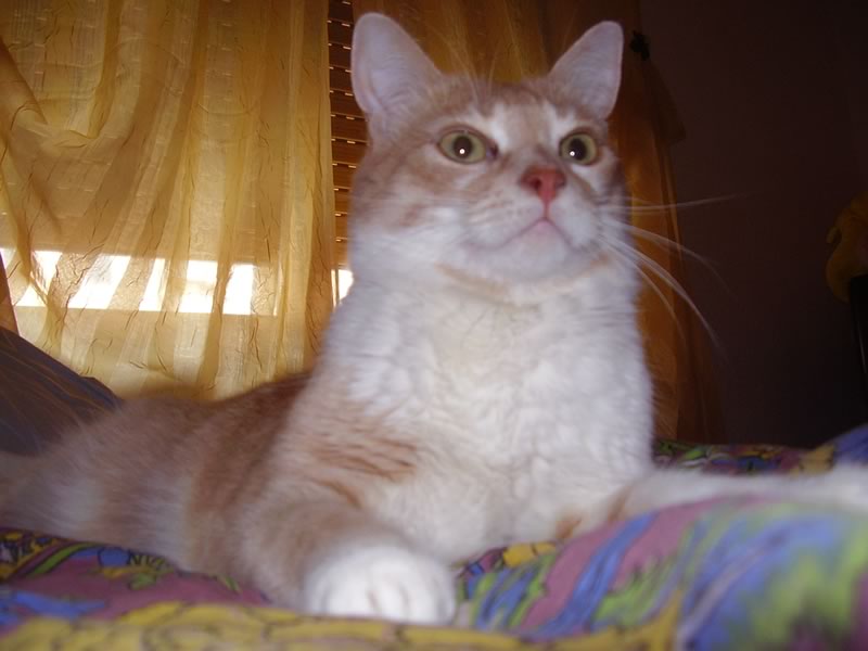 " Quelle dolci fessure mi osservano anche dal buio più completo come rare stelle che si affacciano tra le nuvole. I suoi passi morbidi come piume sopra il vetro mi accompagnano ovunque io vada come un' ombra imprescindibile. Il mio umore, il mio respiro, impercettibile anche per colei che più mi ama, sono invece per lui terremoti di emozioni e di calore che assolutamente mi vuol trasmettere. Non aspetta niente, non pretende niente mentre dormi, ma forse i suoi sogni sono anche i tuoi, e nel farti le fusa, ha forse capito chi dei due ha più bisogno dell'altro. A Goku " |