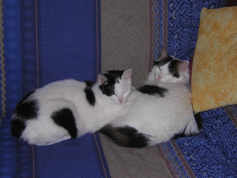 mici: " Ecco i miei "bambini pelosi": Gustavo e Oreste che dormono insieme e i figli di Micia, appena nati, in un circolo tutto pelo e amore!!! Non sono teneri?! " |